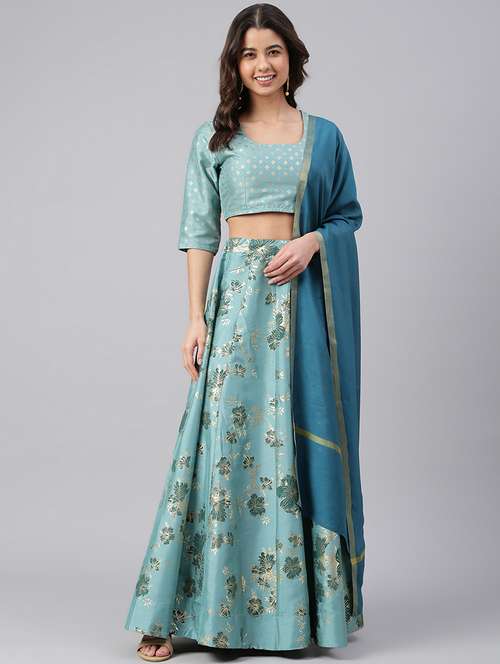- » foil printed sea green lehenga