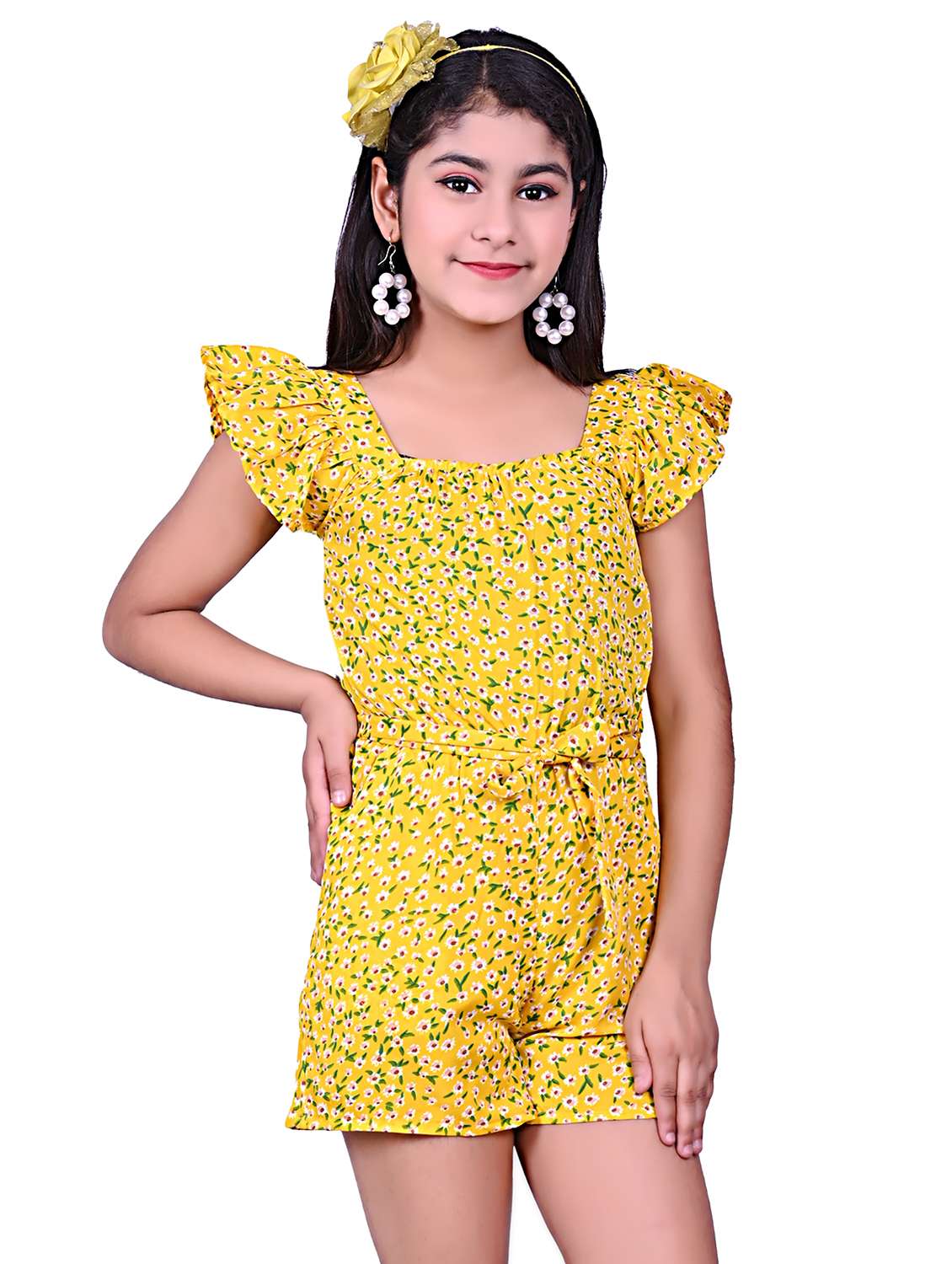 - » yellow floral print bell sleeves playsuit