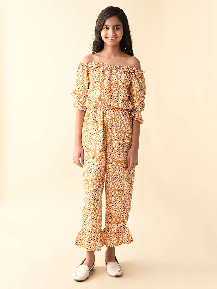 yellow floral print off-shoulder full length jumpsuit  - 19961349 - Very Small Image - 1