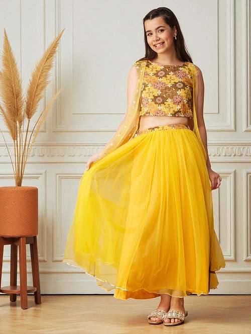 girls printed lehenga and choli with embellished shrug