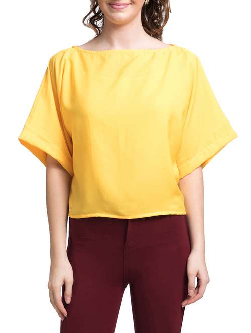 - » yellow solid boat neck top