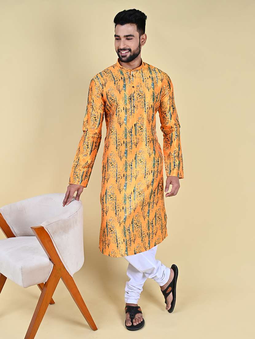 - » men mandarin neck printed long kurta