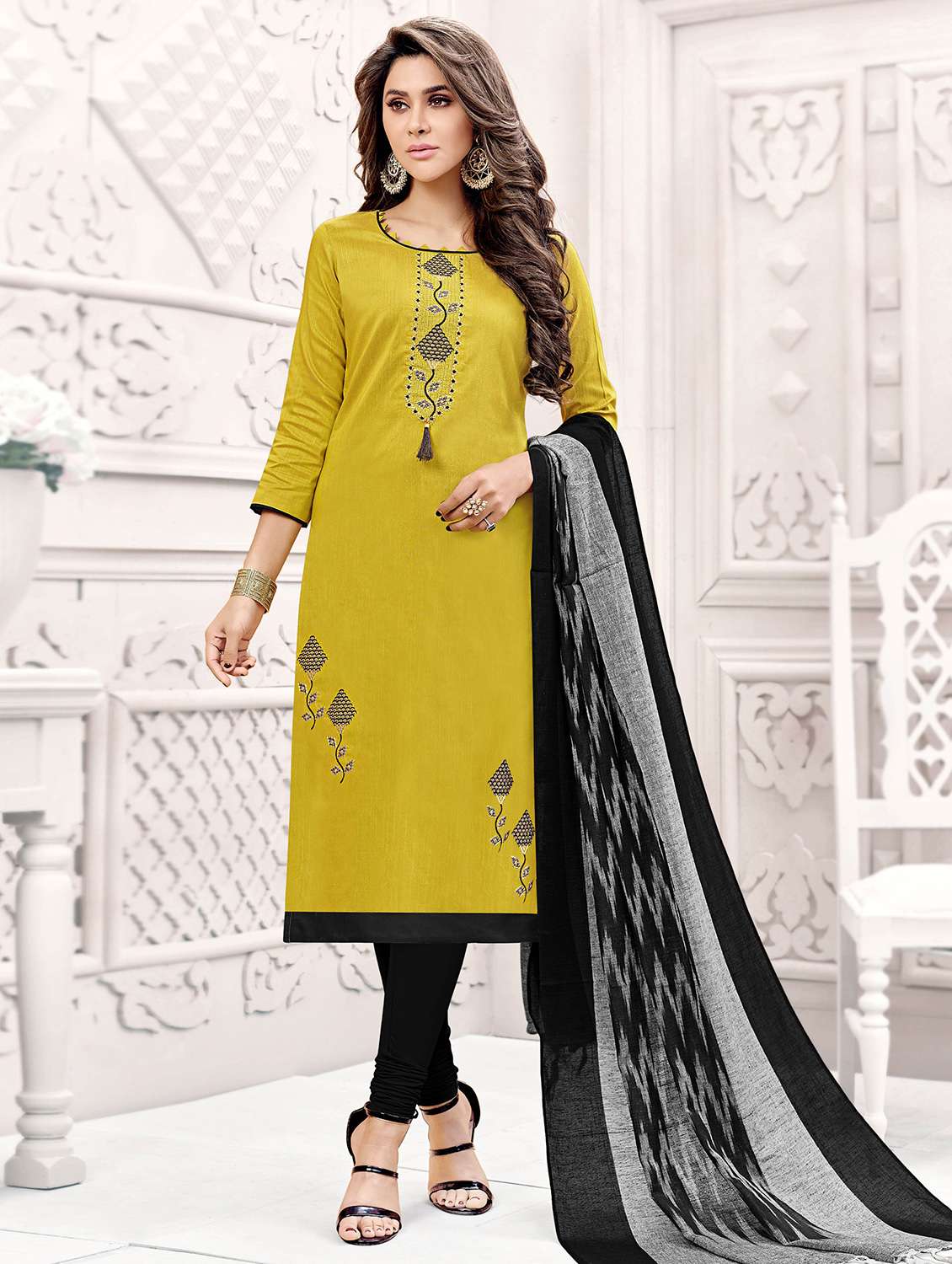 yellow silk unstitched suit