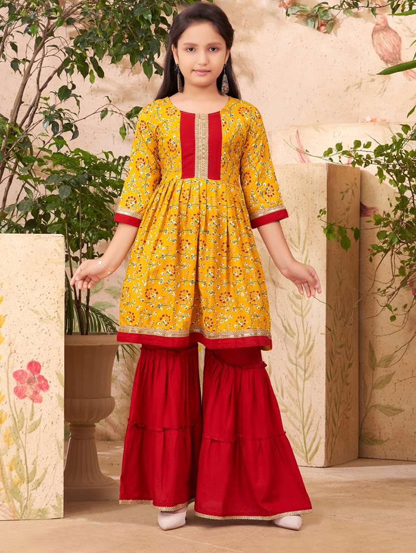 - » girls printed round neck kurta sharara set