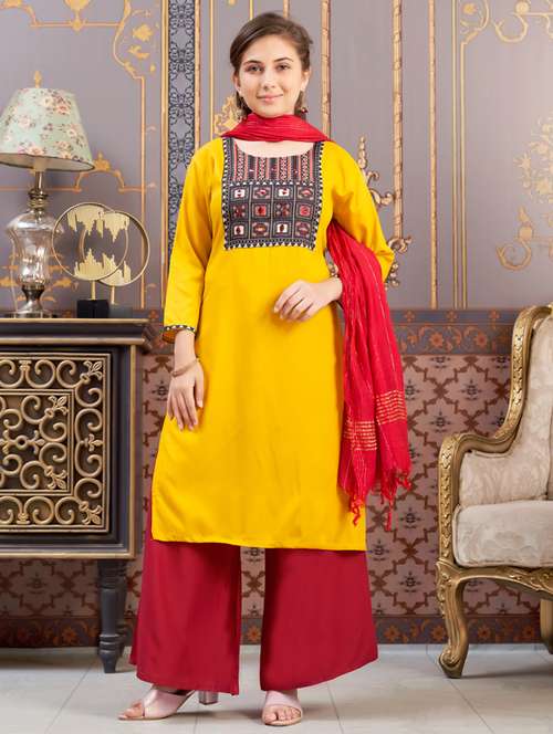 - » girls printed kurta and palazzo with dupatta