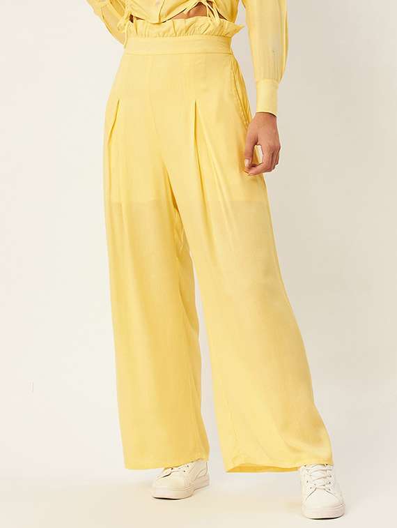 - » high rise solid pleated trouser