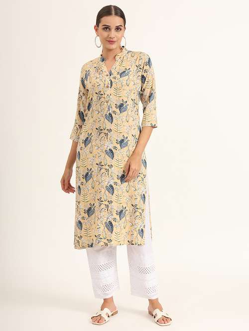 - Grab this beautiful kurta made up of rayon fabric featuring mandarin collar neck designs.