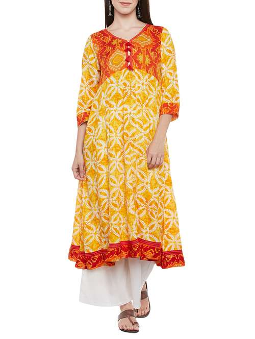 - » red and yellow printed flared kurta