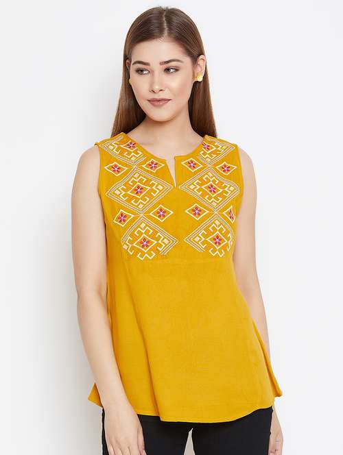 notch neck embroidered top