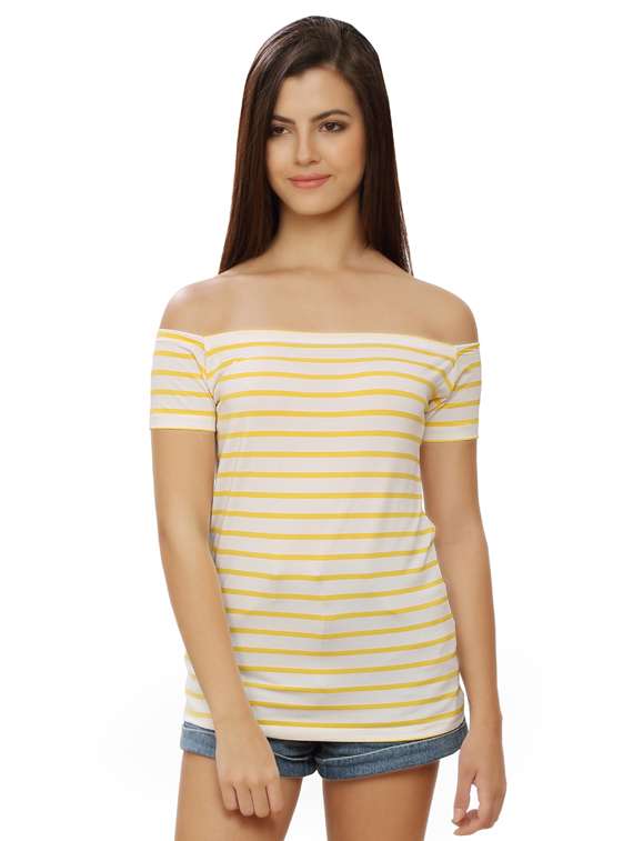 - » off shoulder striped tee