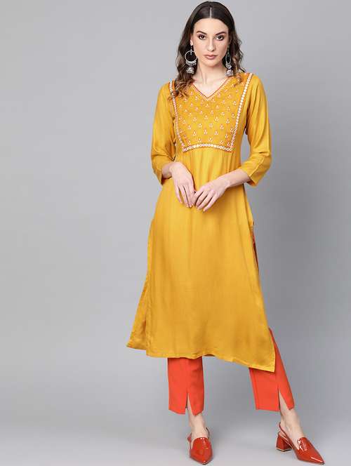 - » yoke embroidered a-line kurta
