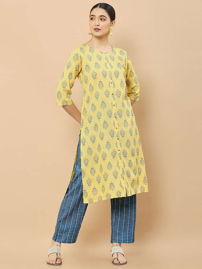 yellow block printed suit set