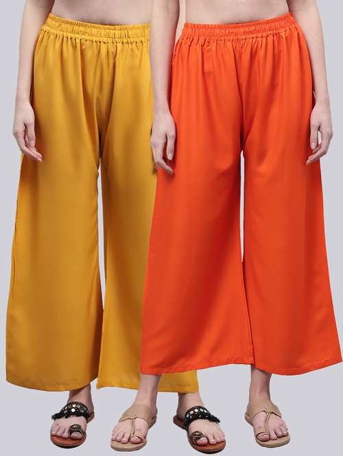 Upgrade your collection of warm-weather staples with these top-notch Dark Orange and Mustard palazzo combo by Valles365. Pair them with a flowy tee and lace-up sandals for a super chic look.