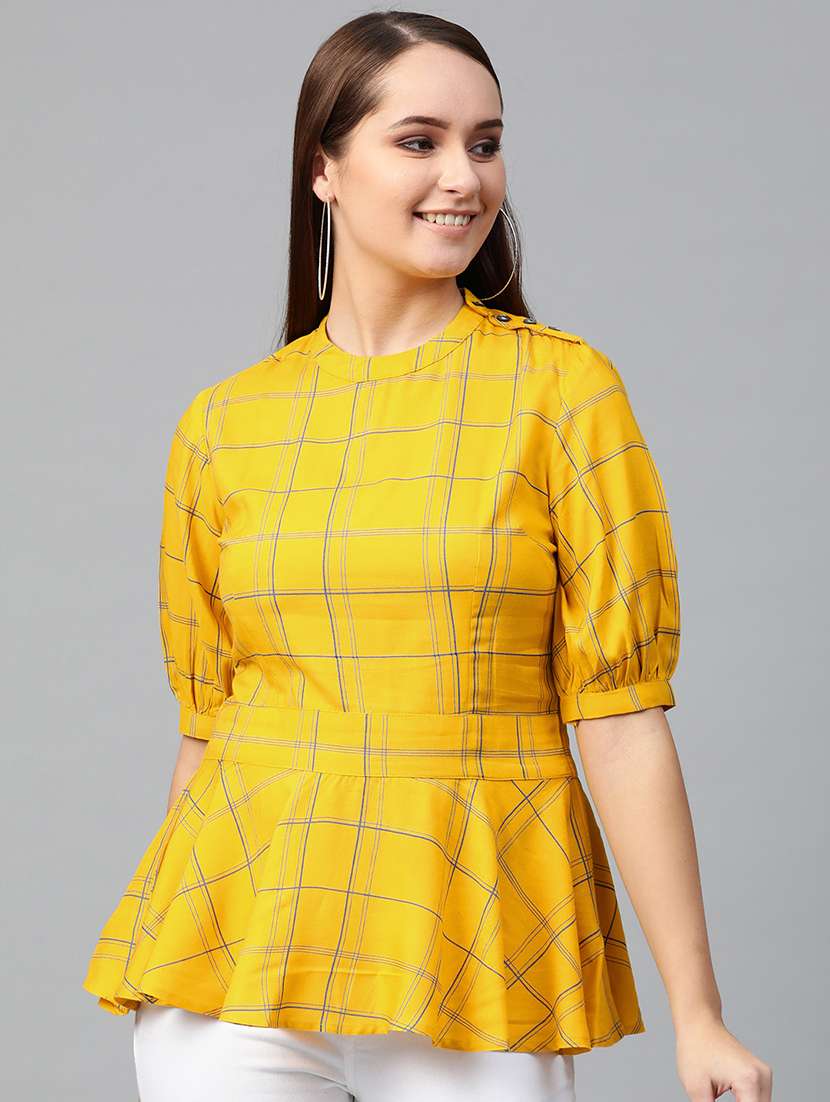 - » round neck checkered peplum top