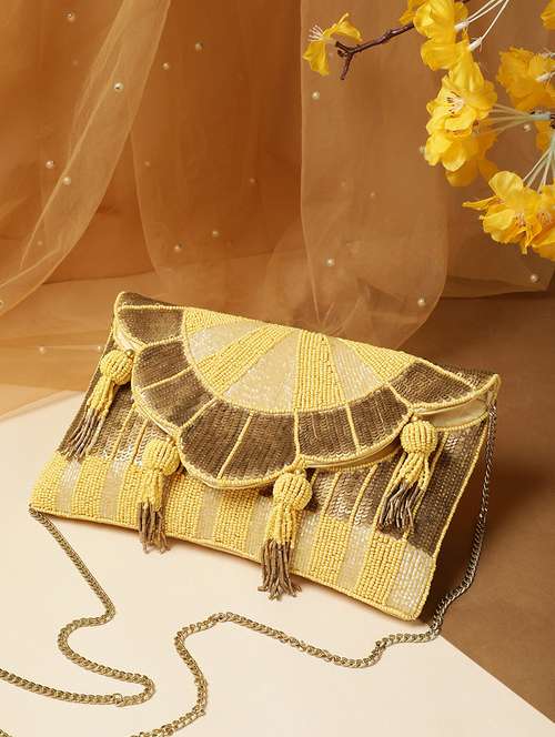 - » yellow striped embellished party sling bag clutch