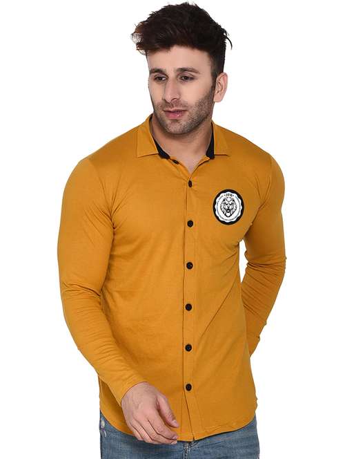 men yellow slim fit solid short sleeve casual shirt with double pockets