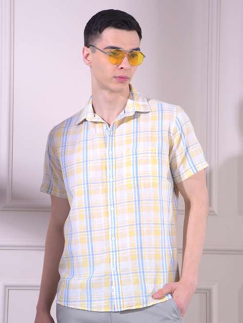 men checkered short sleeve slim fit casual shirt