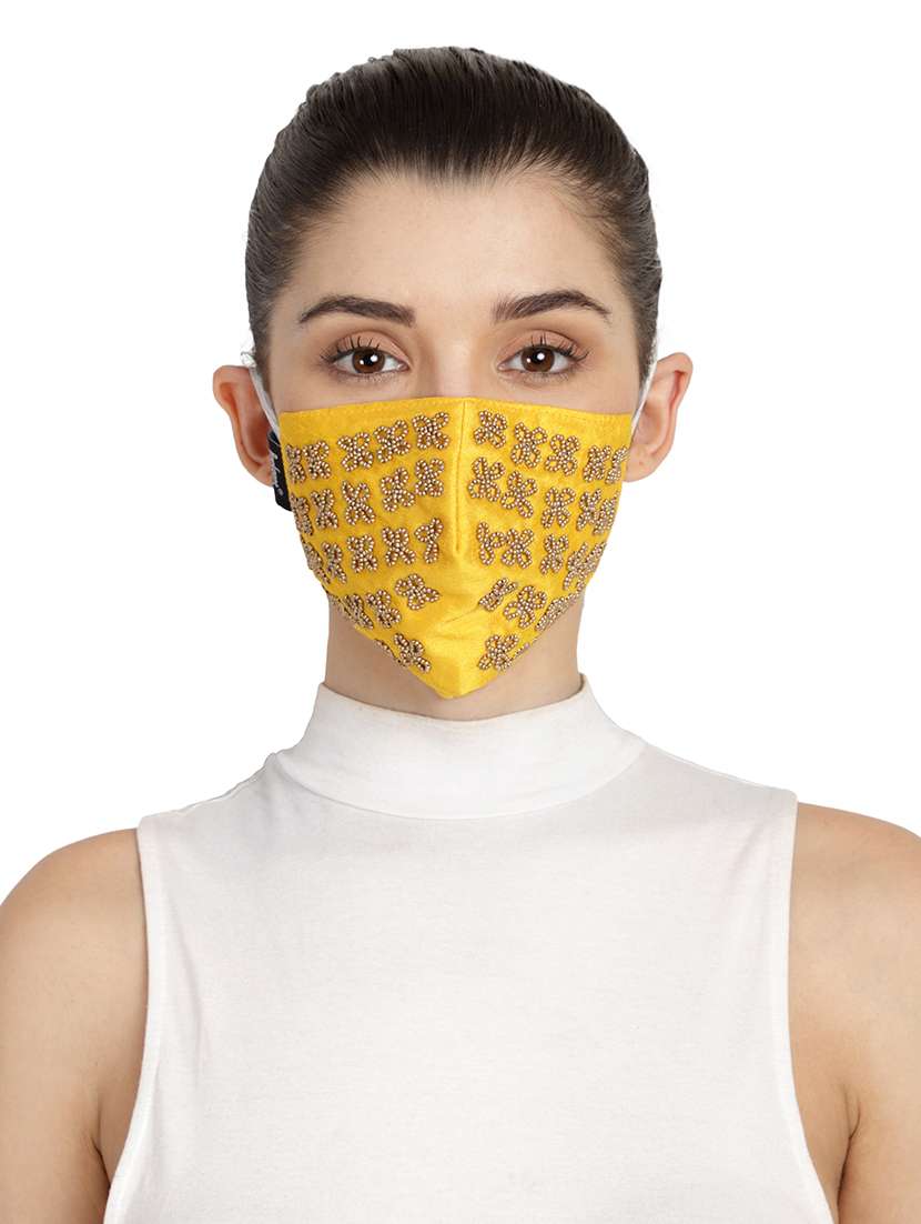- » 3-ply yellow & gold art silk embellished fabric fashion mask