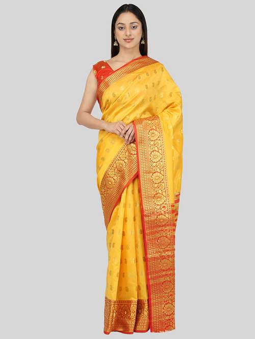 - » yellow silk banarasi saree