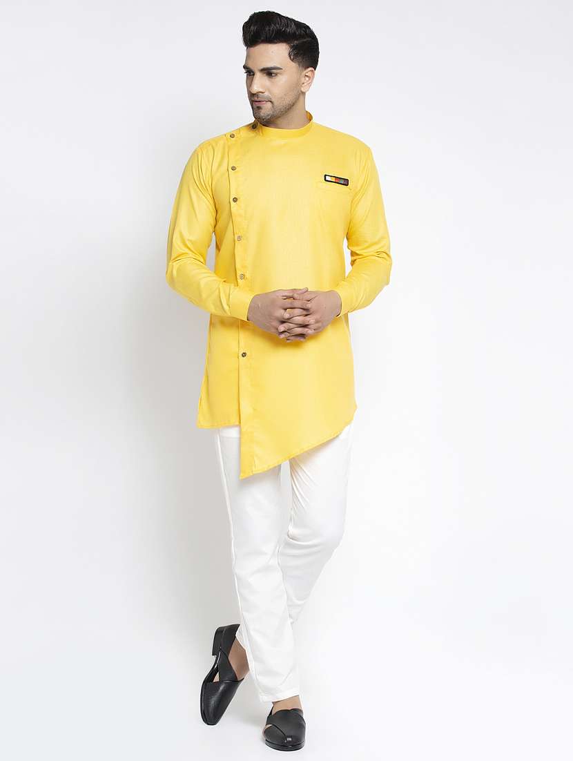 - » yellow solid asymmetric kurta pajama ethnic set