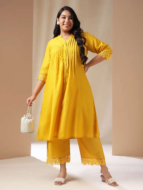 - » yellow lace kurta pant set