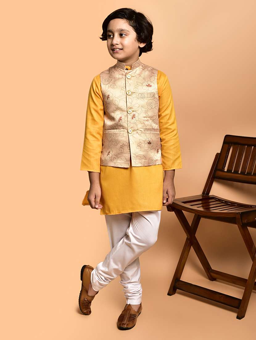 boys solid mandarin neck kurta pyjama ethnic jacket set