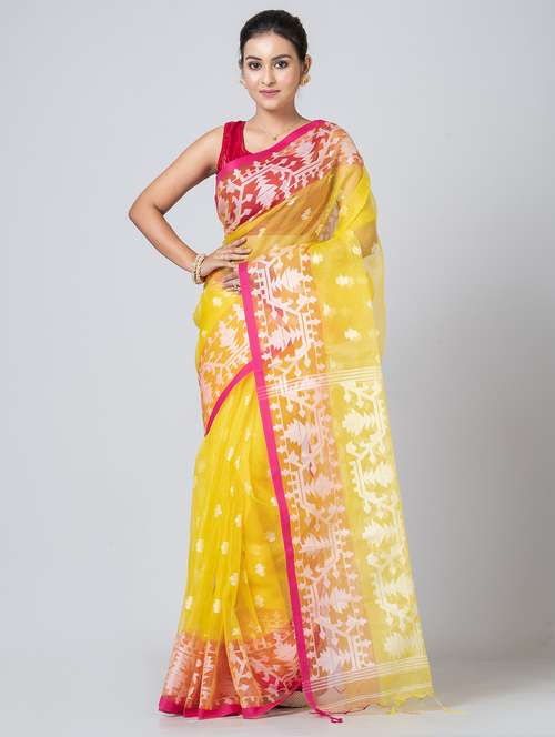 Puku resham silk and cotton jamdani work saree with running blouse fabric