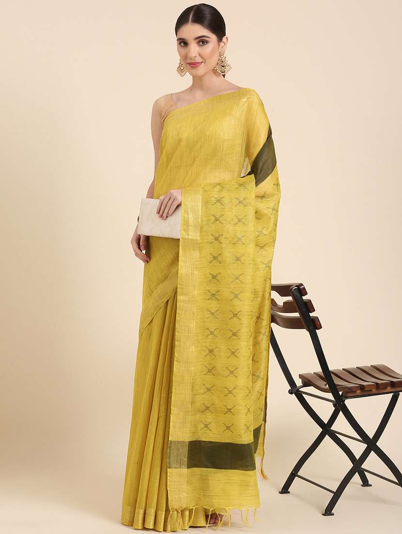 women's self design mellow yellow colored saree with blouse - 20406093 - Very Small Image - 1