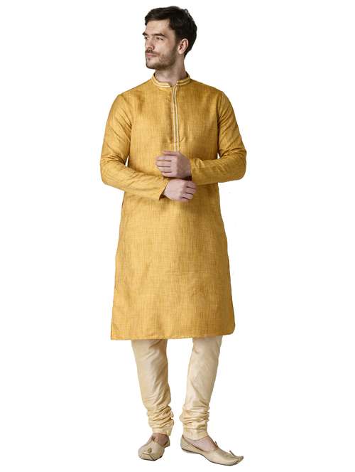 - » yellow self design silk blend long kurta