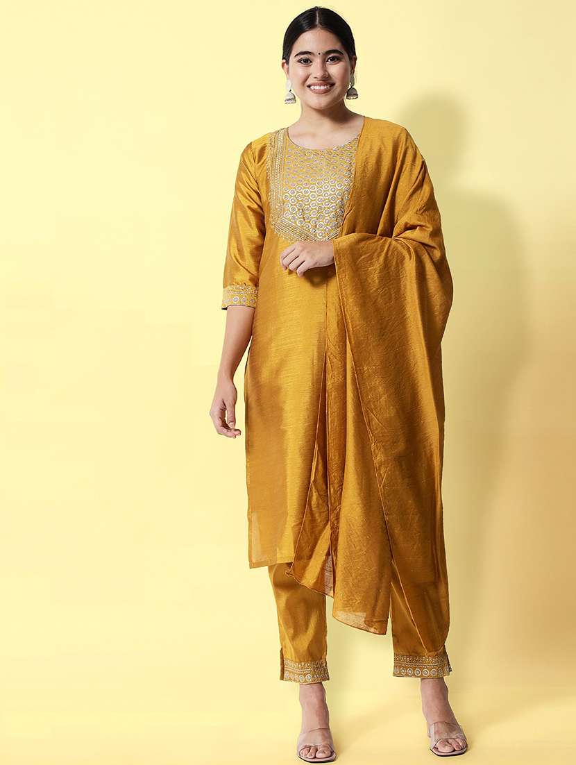 - Find gorgeous sets of ethnic wears in trending designs in mustard colors suitable for festive wear of occasions.