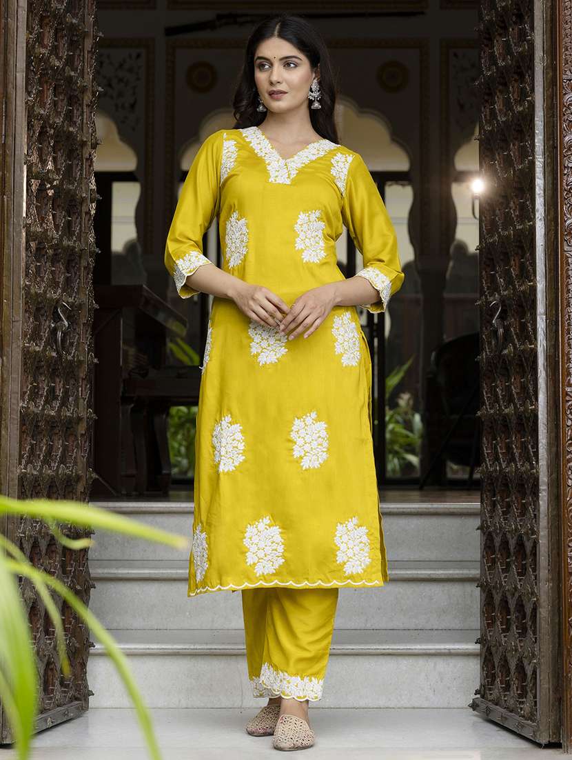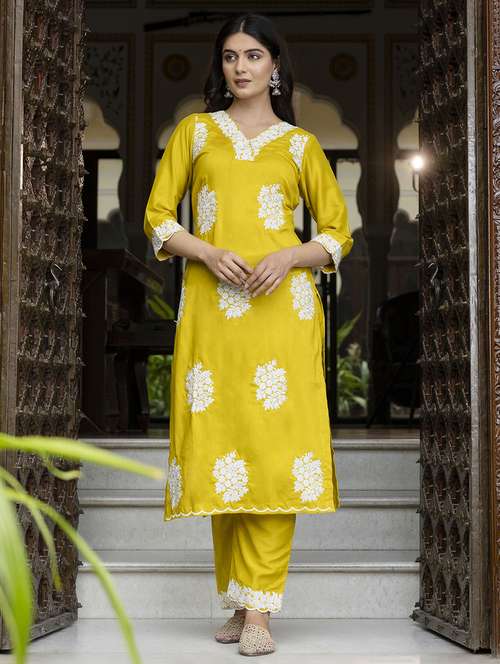 - Find gorgeous sets of ethnic wears in trending designs in yellow colors suitable for casual wear of occasions.