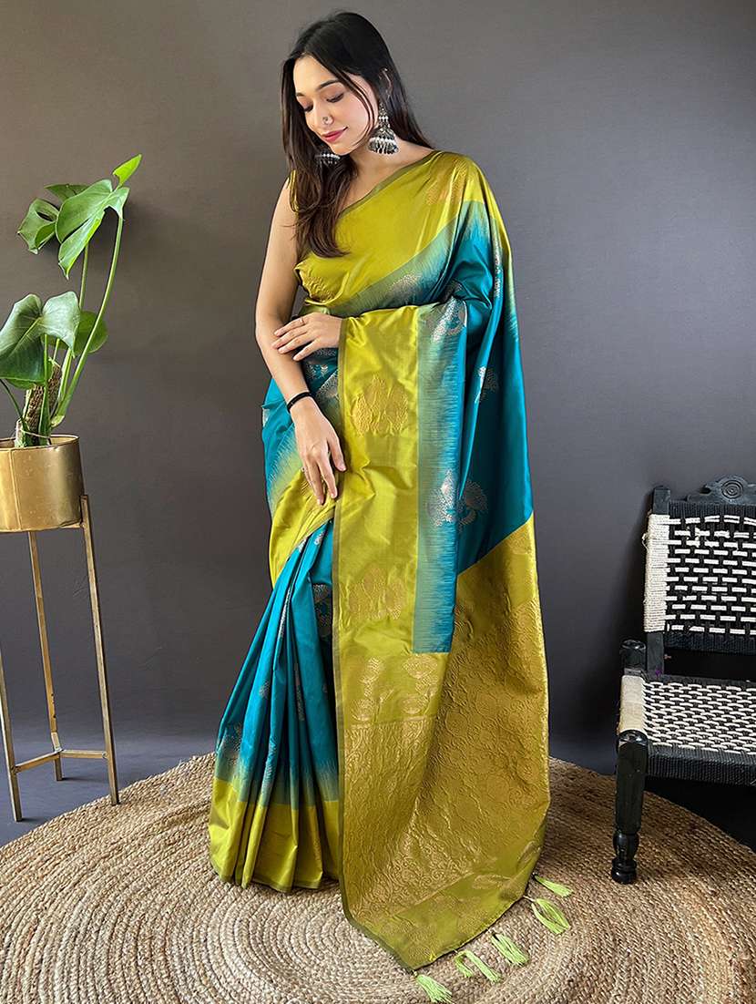 leeli peeri designerWomen's Soft Silk Woven Zari Work Saree With Unstitch Blouse Piece