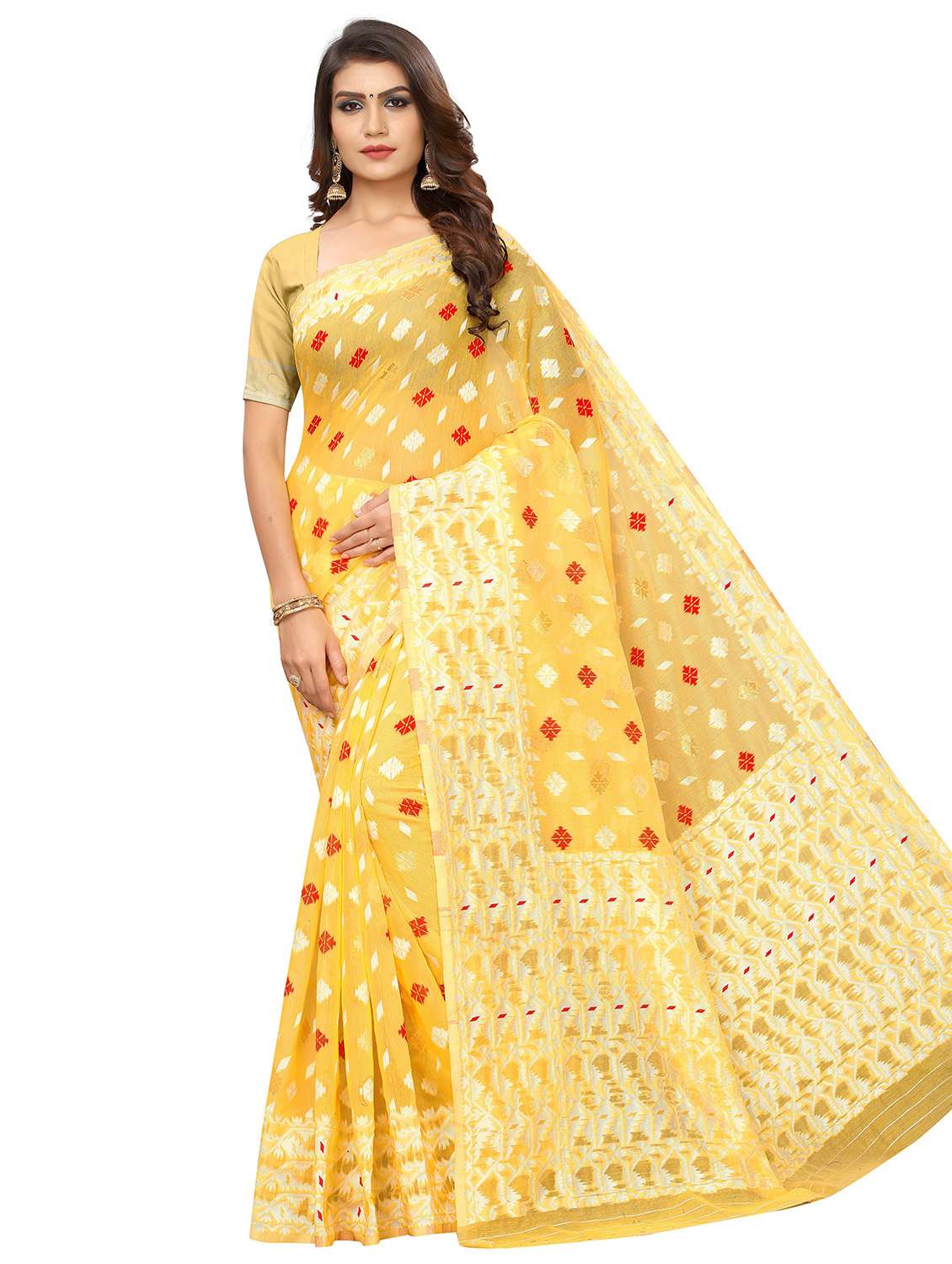 - » yellow jamdani saree with blouse piece