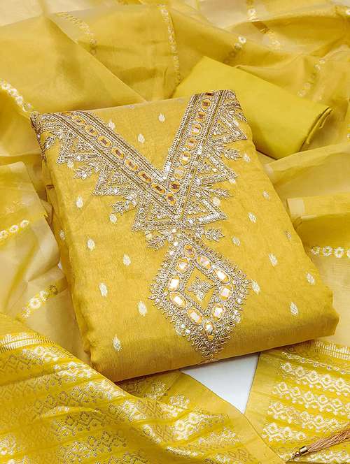 - Look ultra gorgeous in unstitched suits from Peachmode and grab these beautiful suits in yellow colour.