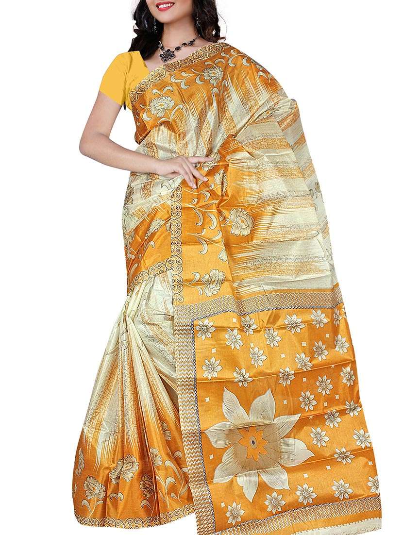 yellow silk saree - 12222941 - Very Small Image - 1