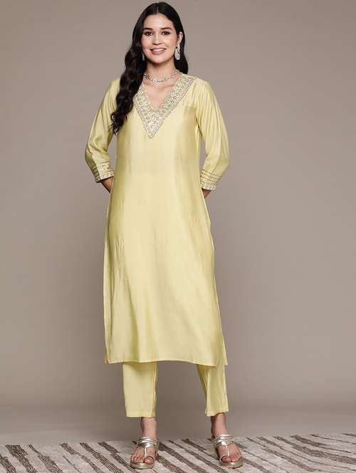 - » women yellow v neck kurta pant set