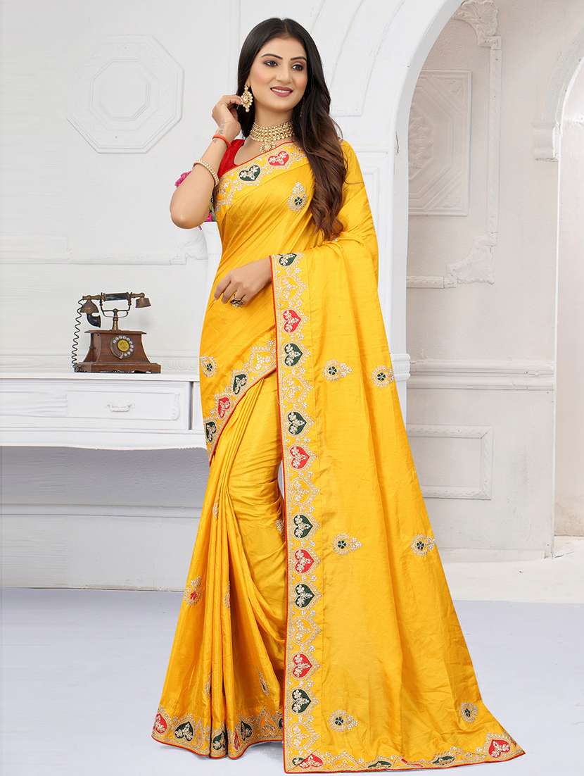 yellow bordered saree with blouse