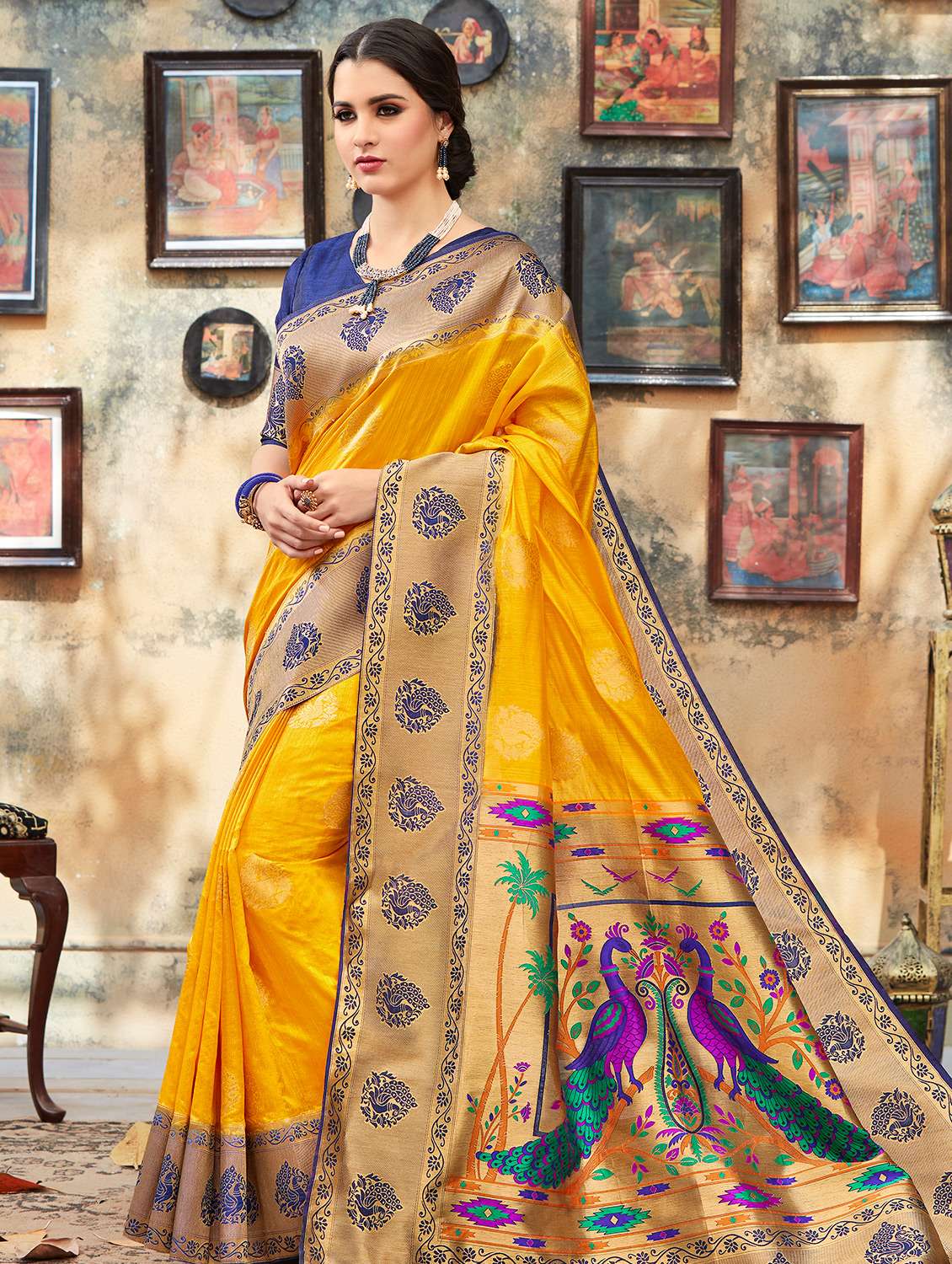 conversational paithani saree with blouse