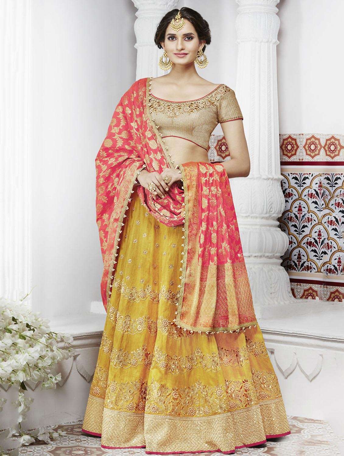 - » yellow silk flared lehenga