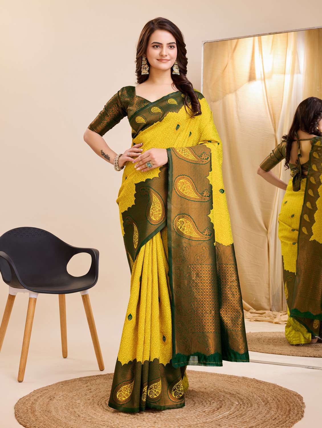 women self design banarasi saree with blouse