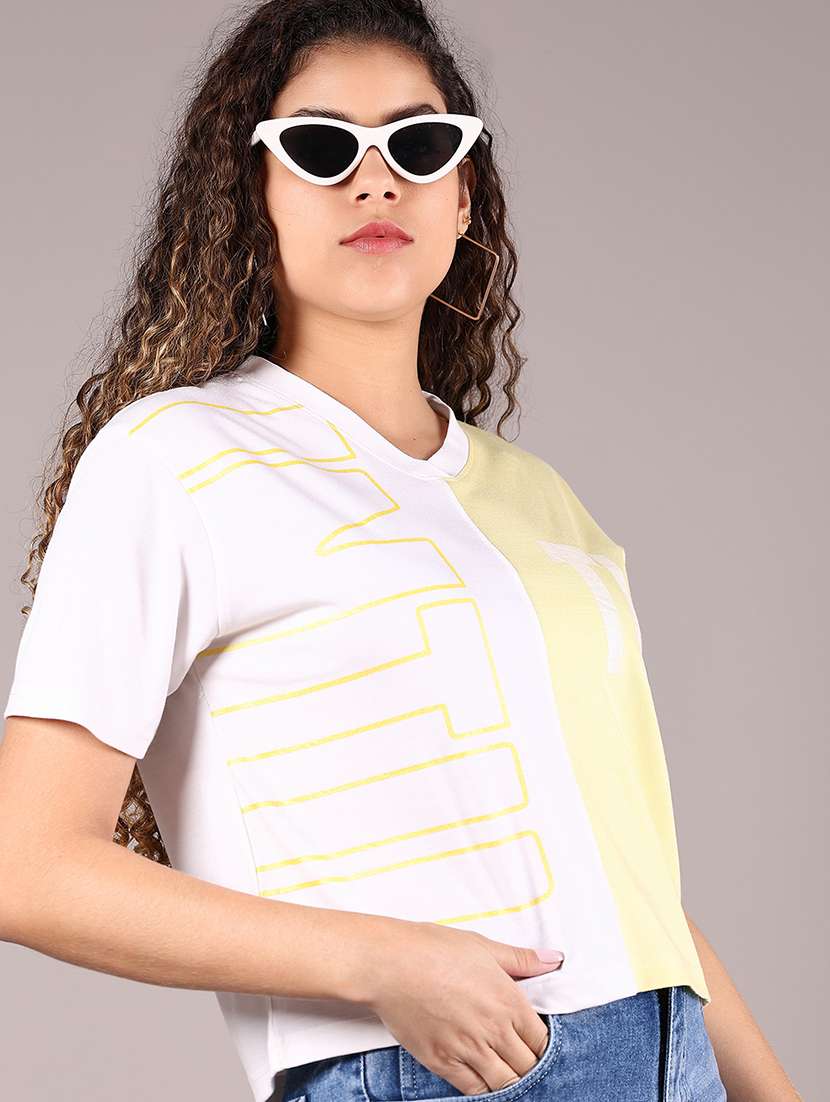 - » women color blocked short sleeve crop t-shirt