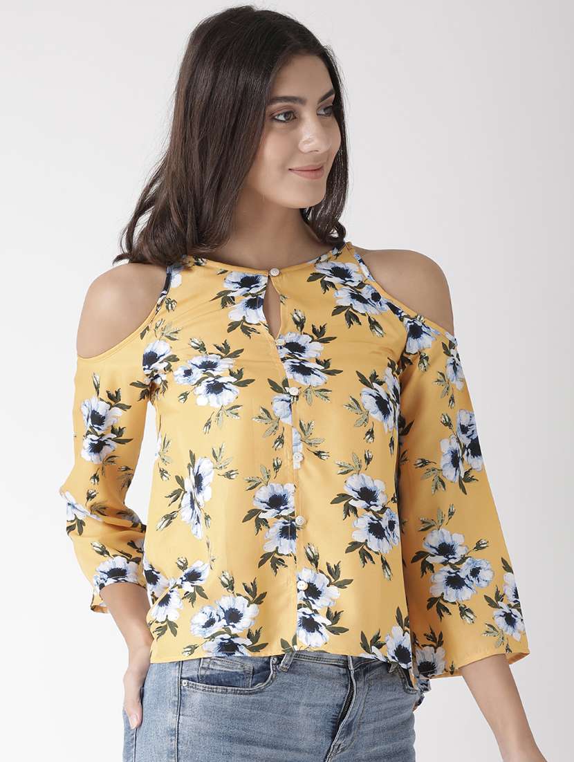 cold shoulder floral asymmetric top