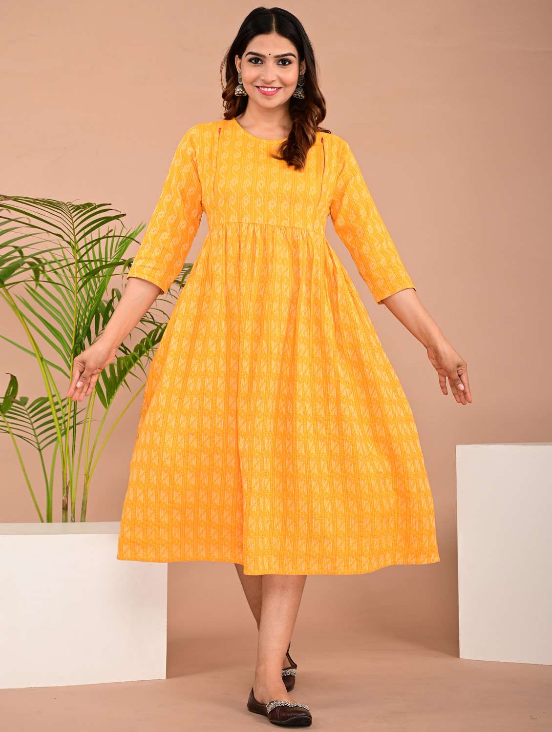 - » women round neck printed maternity wear dress