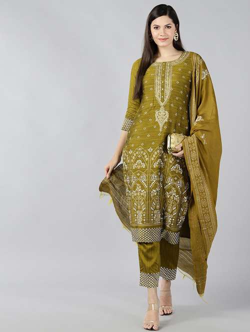 - Find gorgeous sets of ethnic wears in trending designs in yellow colors suitable for festive wear of occasions.
