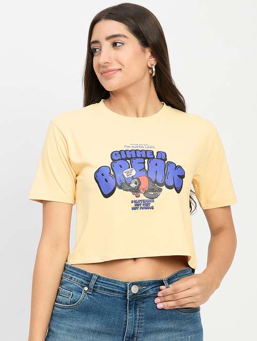- Get ready to adorn some funky tees! LimeRoad brings to you the finest collection of tees from CAMEY and that too in yellow colours.