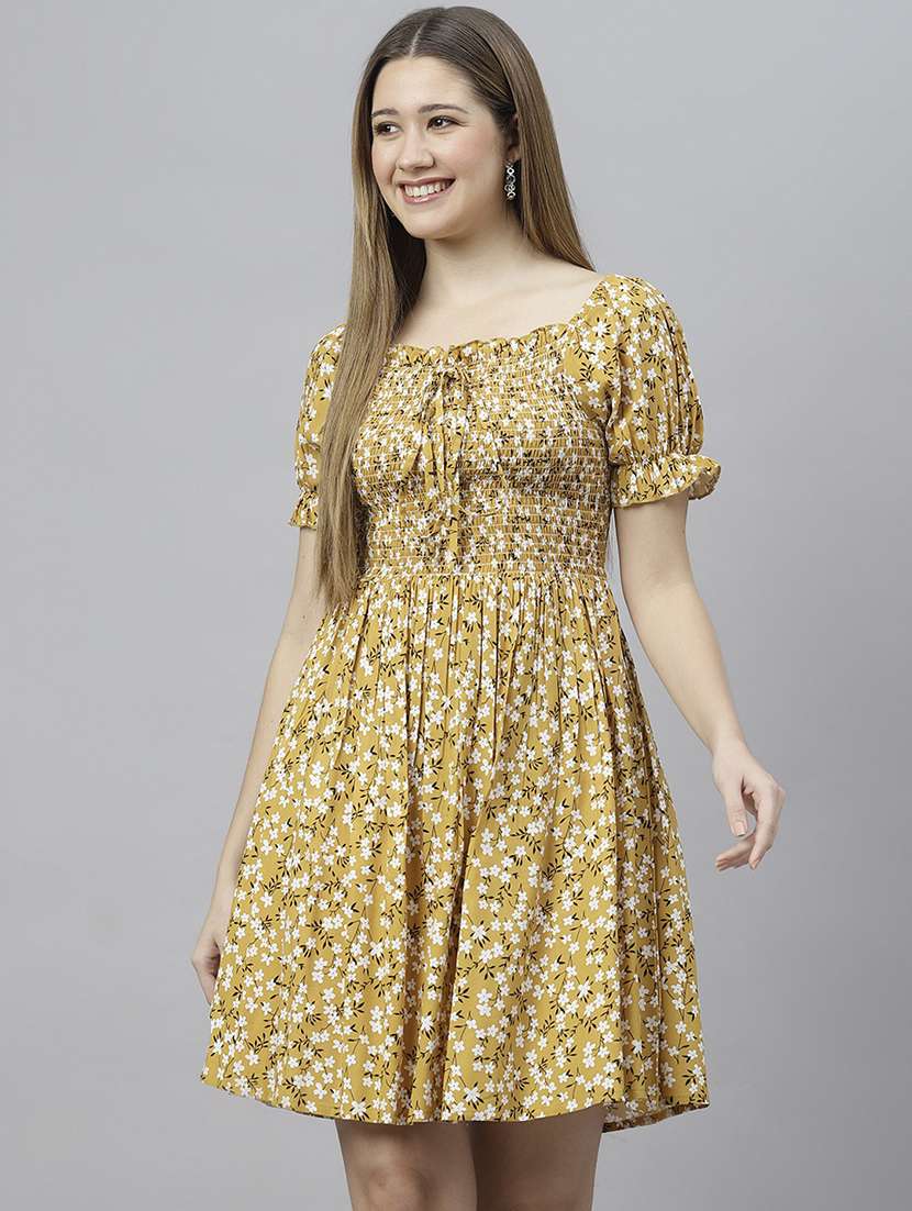 - » women yellow printed fit & flare dress