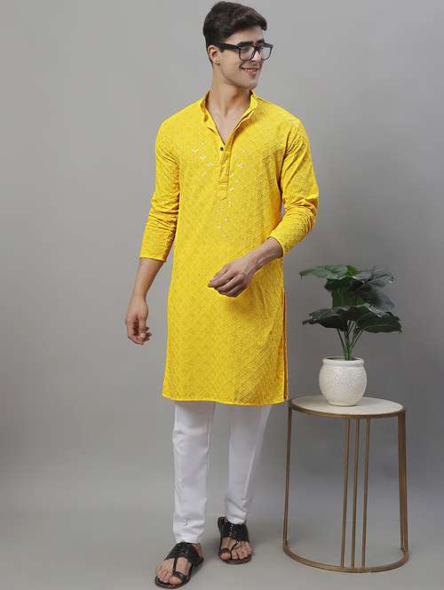 - » men yellow chikankari embroidered and sequin kurta pyjama set