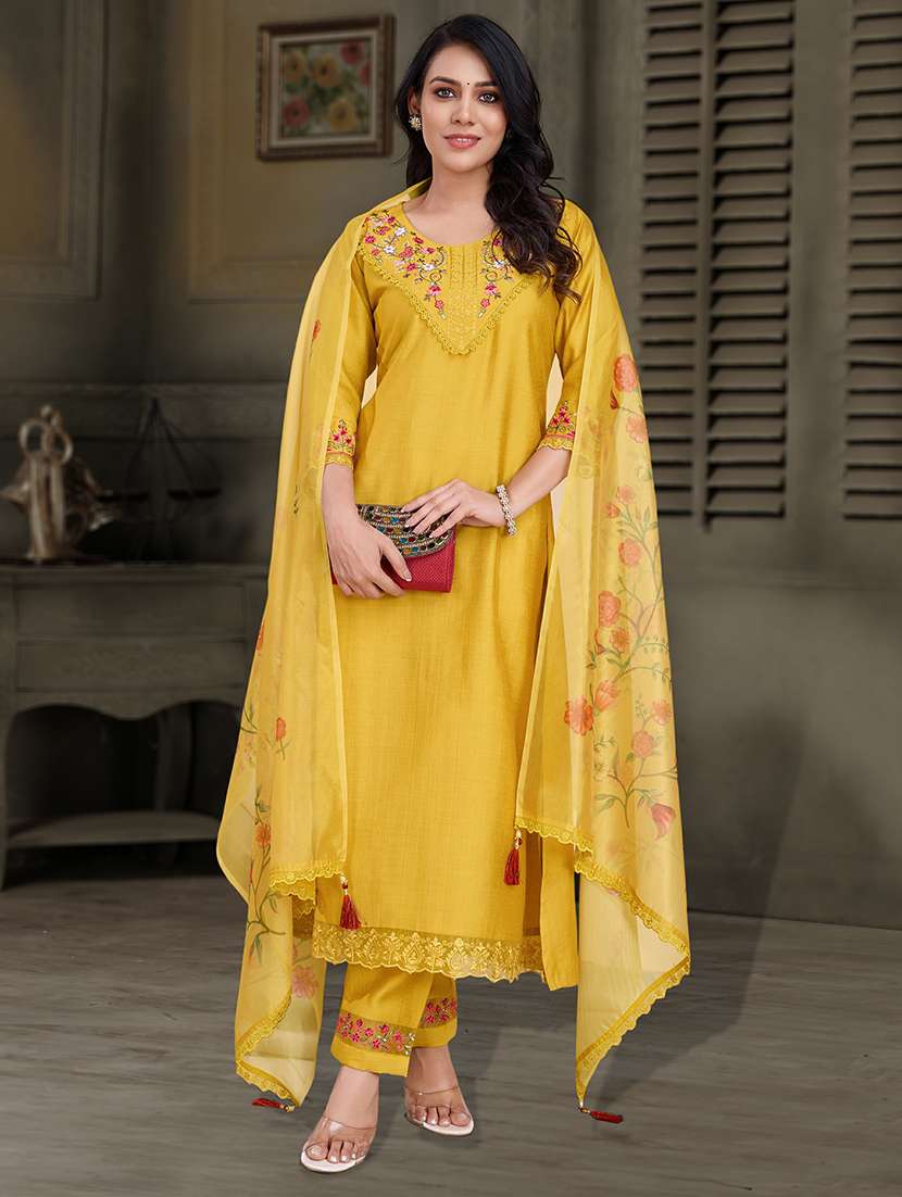 - Find gorgeous sets of ethnic wears in trending designs in yellow colors suitable for festive wear of occasions.