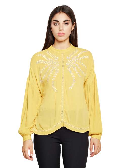 lace paneled embroidered top