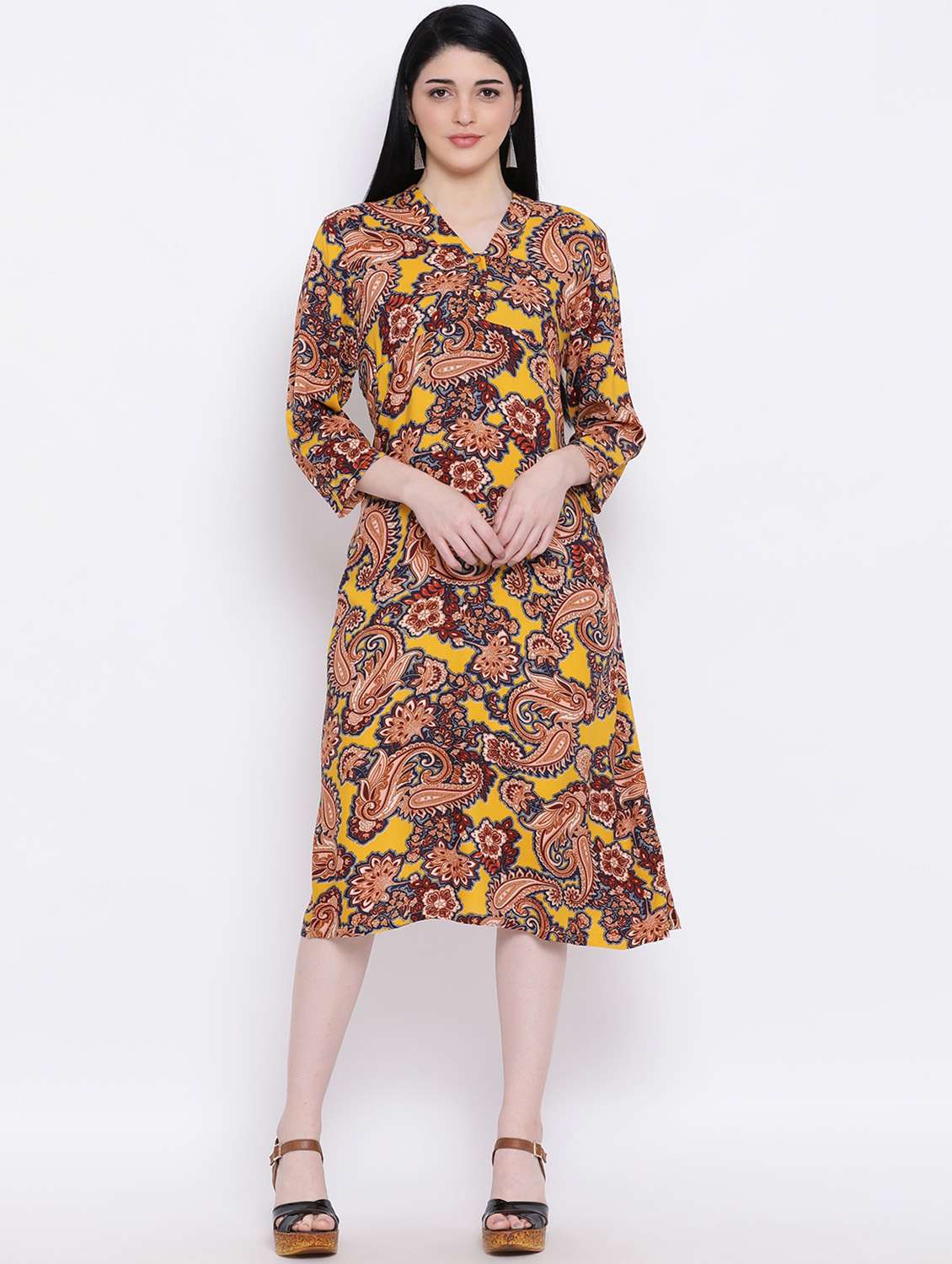 - Dress up in a soothing pattern and don this dress made of viscose material.